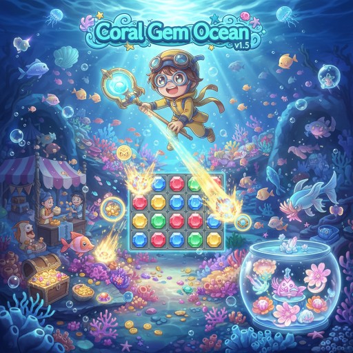 Step into a magical underwater adventure with 'Coral Gem Ocean v1.5!' Explore beautiful coral reefs filled with vibrant gems waiting to be matched and collected. As an underwater explorer, you'll solve exciting match-3 puzzles set in immersive ocean environments that showcase unique marine beauty. Strategically swap and combine colorful gems to create powerful cascades that remove obstacles and unlock special boosters with magical effects. Each level takes you through new underwater challenges and destinations, from sunlit coral gardens to mysterious deep-sea caves. Encounter extraordinary sea creatures who guard ancient secrets, and uncover their stories as you progress through the game. Gather rare artifacts and use them to decorate your personal aquarium with stunning ornaments, creating your own magnificent marine sanctuary. Challenge yourself with various gameplay modes, including exciting timed levels and puzzle adventures with limited moves that test your strategic abilities. Compete with players worldwide, climb leaderboards, and see who can achieve the highest scores in this captivating match-3 journey. With gorgeous visuals, calming sound effects, and highly addictive gameplay, 'Coral Gem Ocean v1.5' offers a peaceful and delightfully engaging experience for players of all ages. Are you ready to dive deep into this sparkling underwater world and unlock its treasures?