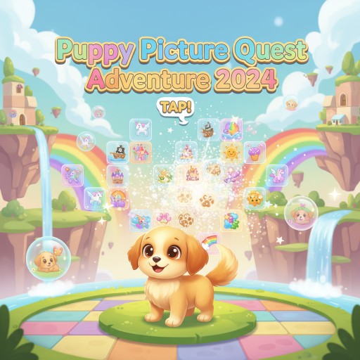 Enter a charming puzzle world with your playful puppy! In 'Puppy Picture Quest Adventure 2024', help your clever pup gather colorful magical memories scattered across bright grid worlds. Instead of moving tiles, just tap on groups of 3 or more matching tiles to make them burst into pretty sparkle effects that clear the playing area. Your friendly puppy character needs your clever thinking to solve charming puzzles and collect all those beautiful pictorial treasures across cheerful stages. This delightful logic game combines simple yet engaging mechanics with happy visuals perfect for puzzle enthusiasts!