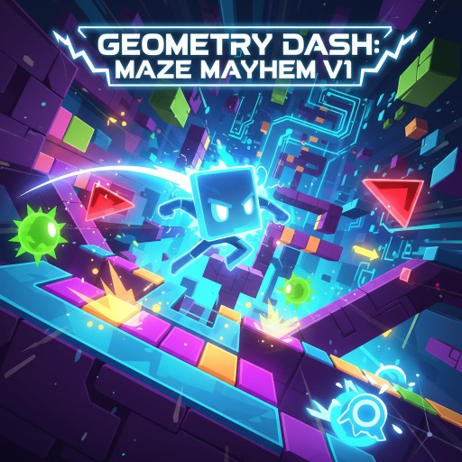 Step into a vibrant universe of geometric wonder in 'Geometry Dash: Maze Mayhem v1'. As the fearless luminescent square, you'll navigate labyrinthine paths filled with deadly triangles, bouncing enemies, and tricky platforming puzzles. Each level is a new challenge, testing your reflexes and precision as you race through shifting mazes and avoid hidden traps. Can you outsmart the labyrinth and keep your square safe through every twist and turn?