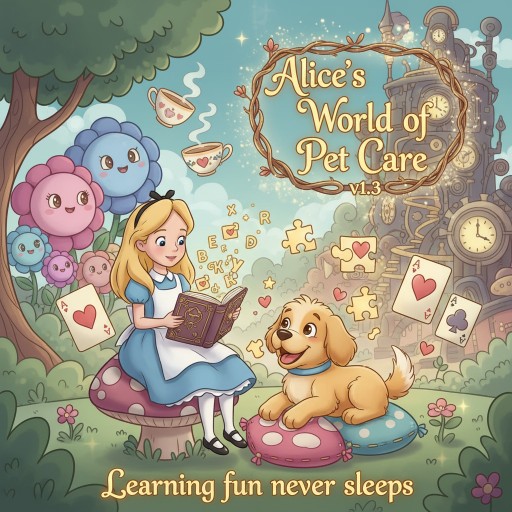 Embark on an educational journey across the colorful lands of Wonderland! In 'Alice's World of Pet Care v1.3', meet Clover, the curious and loving pup! Dive into enchanting scenes where you'll care for Clover's every need, from delightfully quirky adoption to bonding playtime to cozy nightly bedtime stories. Will you uncover the secrets of the whimsical Clockwerk maze or unravel the mysteries left by the Mad Hatter's tea party? Take a magical stroll in 'Alice's World of Pet Care v1.3', a game developed by Nau.kids, where learning fun never sleeps.