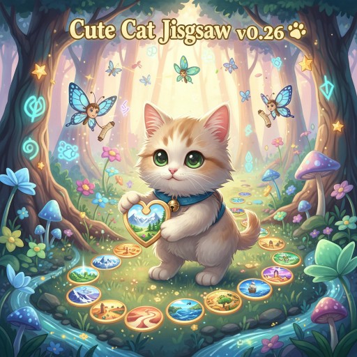 Journey through a whimsical forest where every puzzle piece tells a story. In 'Cute Cat Jigsaw v0.26', you'll help a curious kitten piece together her magical adventures across 15 levels, each filled with hidden messages and charming obstacles. Discover the secrets of the enchanted meadow while testing your patience and attention to detail.